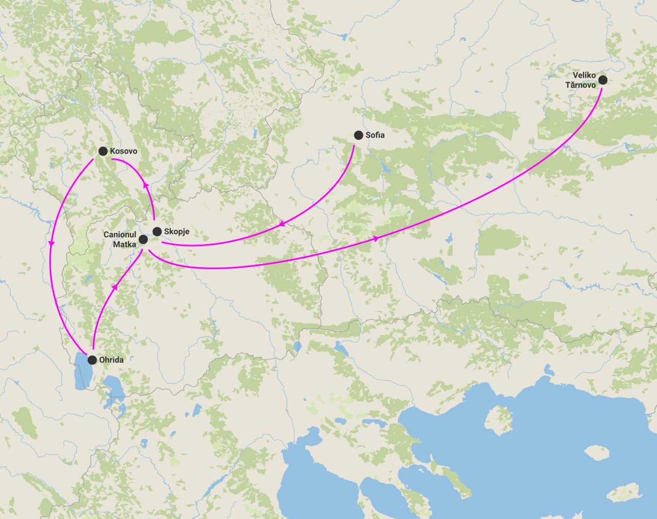 Itinerariu: Sofia - Skopje - Kosovo - Ohrid - Canionul Matka - Veliko Tarnovo