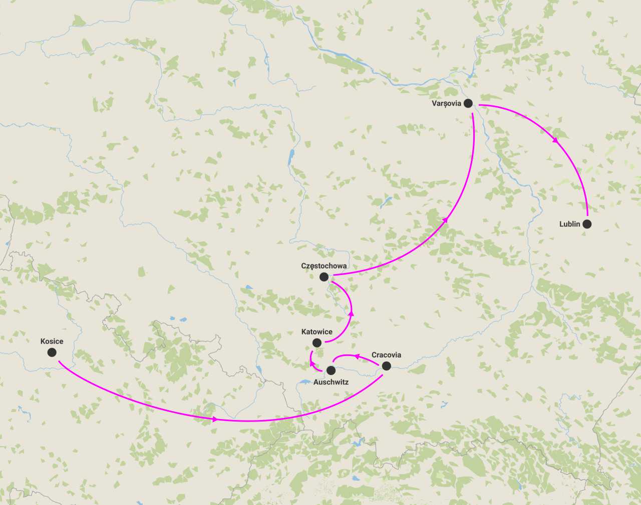 Itinerariu: Cracovia - Czestochowa - Auschwitz - Birkenau - Katowice - Varsovia - Lublin