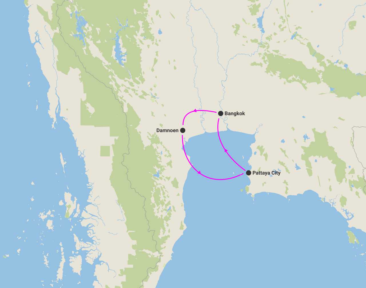 Asia de Sud-Est sau Indochina e una dintre cele mai atractive regiuni ale lumii din punct de vedere turistic – orase pline de viata, monumente fabuloase si plaje de neuitat. Este o regiune extrem de cosmopolita, cu diverse nationalitati si religii – budisti, musulmani, taoism sau hinduism – care si-au lasat amprenta atat pe civilizatia locului, pe stilul de viata si, mai ales, pe arhitectura. Circuitul propus „bate” o cale clasica de secole – de la Bangkok la Pattaya, descoperind parti din Thailanda cea zambitoare.